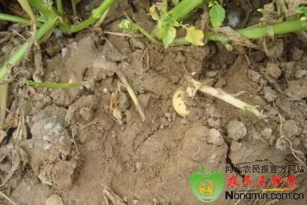 近日河北平原地区商品马铃薯正值收获时期,有几个种植户打来电话咨询同一个问题。就是在收刨过程中发现一些地块儿有部分植株出现异常现象,主要表象是土豆秧长势强壮,地下未形成薯块;仔细观察地下匍匐茎未成薯而窜出地表形成枝条。在马铃薯栽培上叫做“窜箭”现象。如下图: 匍匐茎窜出地表