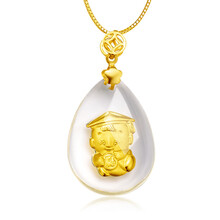 小博士晶美金 吊坠千足金水晶吊坠 可爱娃娃造